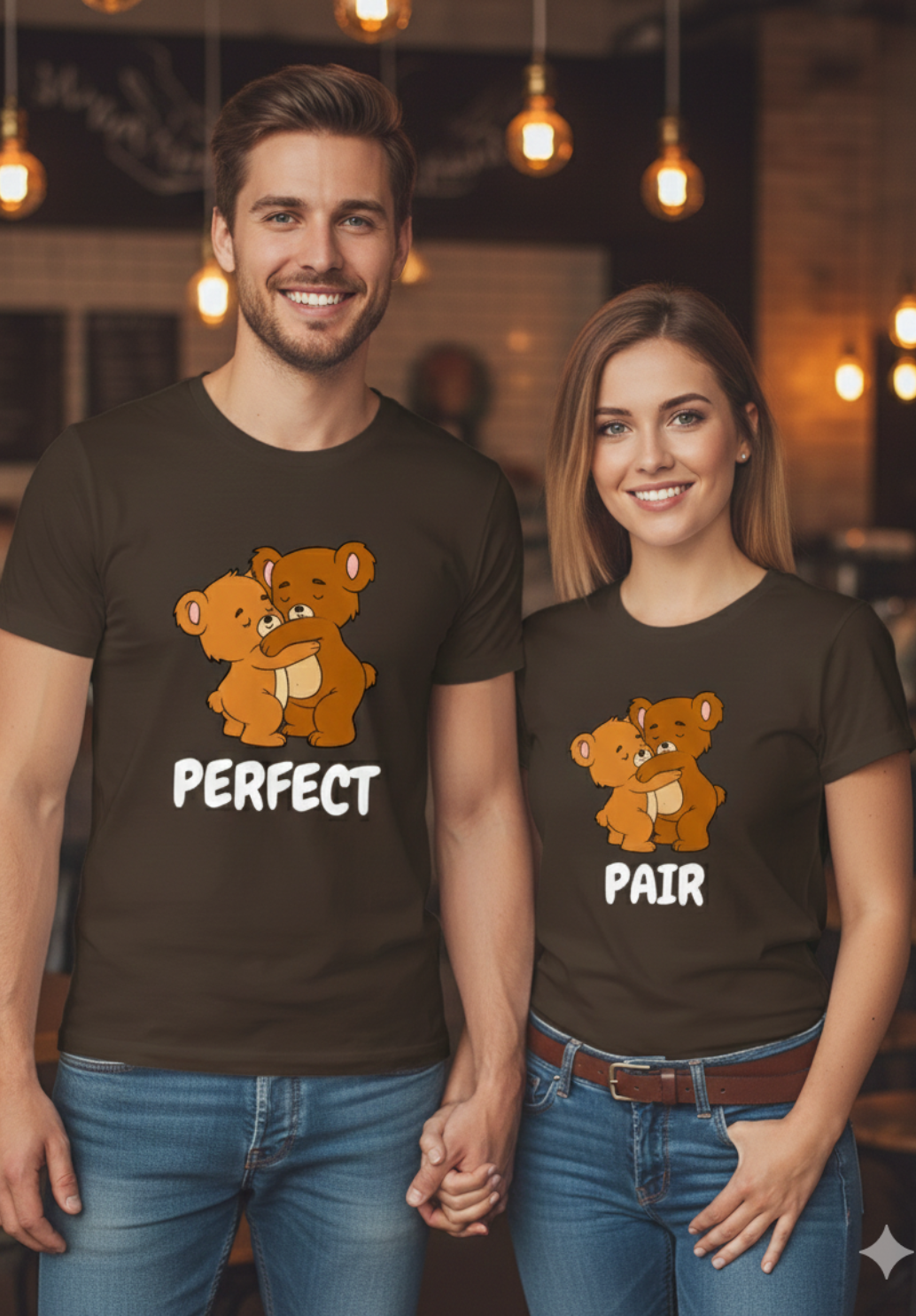 Shop “Perfect Pair” couple t-shirt. Premium cotton, comfortable fit & sweet matching text design — perfect for couples, Valentine’s Day, anniversaries, gifting & cute everyday couple outfits.